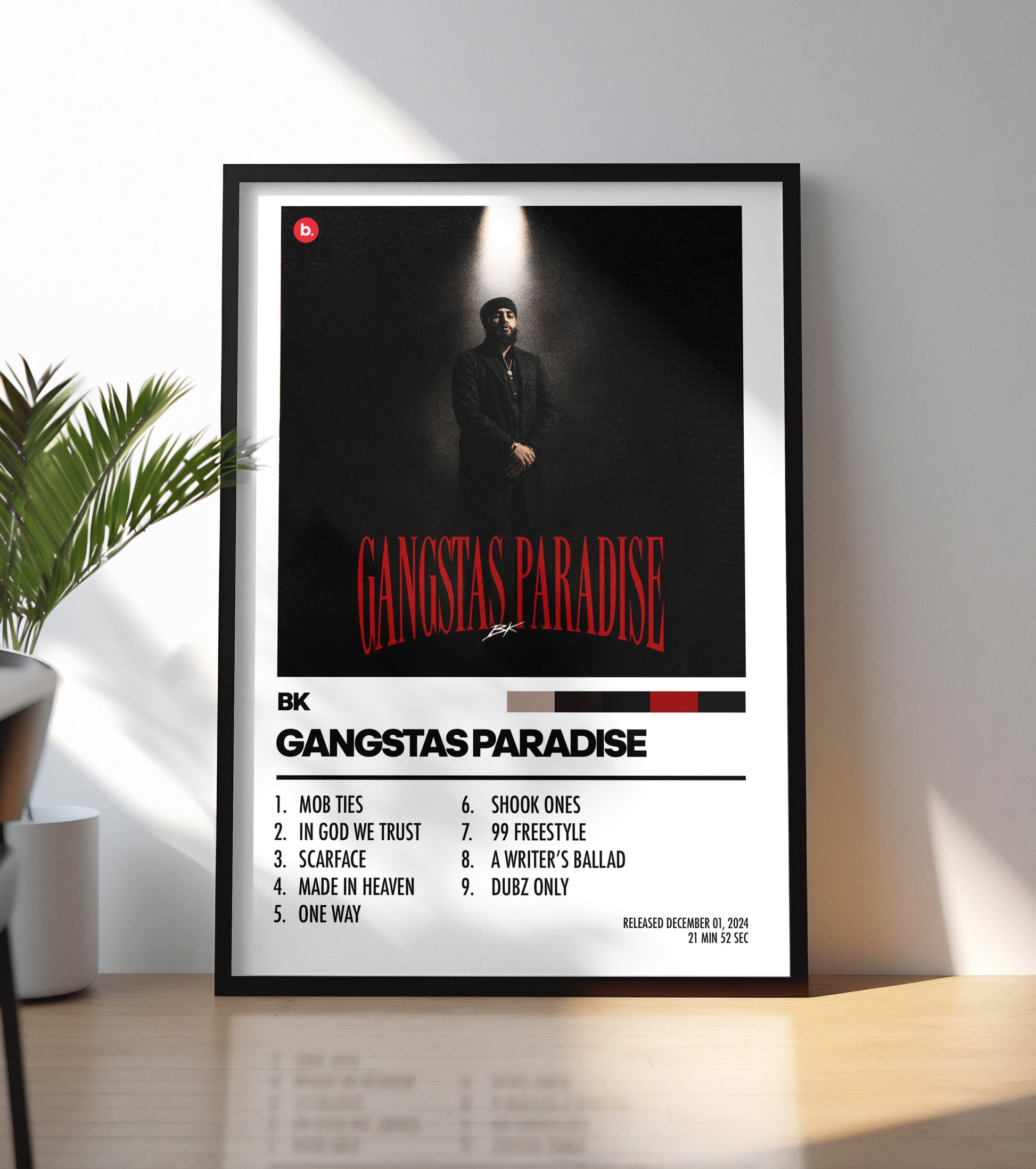 Celebrate the artistry of BK's Gangsta's Paradise with the design that captures its essence and timeless appeal. Printed with exceptional quality and rich, lasting colors, this piece elevates the aesthetic in your space, creating a connection that resonates beyond the melodies. A unique addition for true admirers of music and meaningful art.